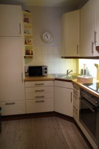 Eine komplett eingerichtete Küche steht ihnen zur Verfügung, die mit dem Wintergartenzimmer und dem Waldzimmer geteilt wird.